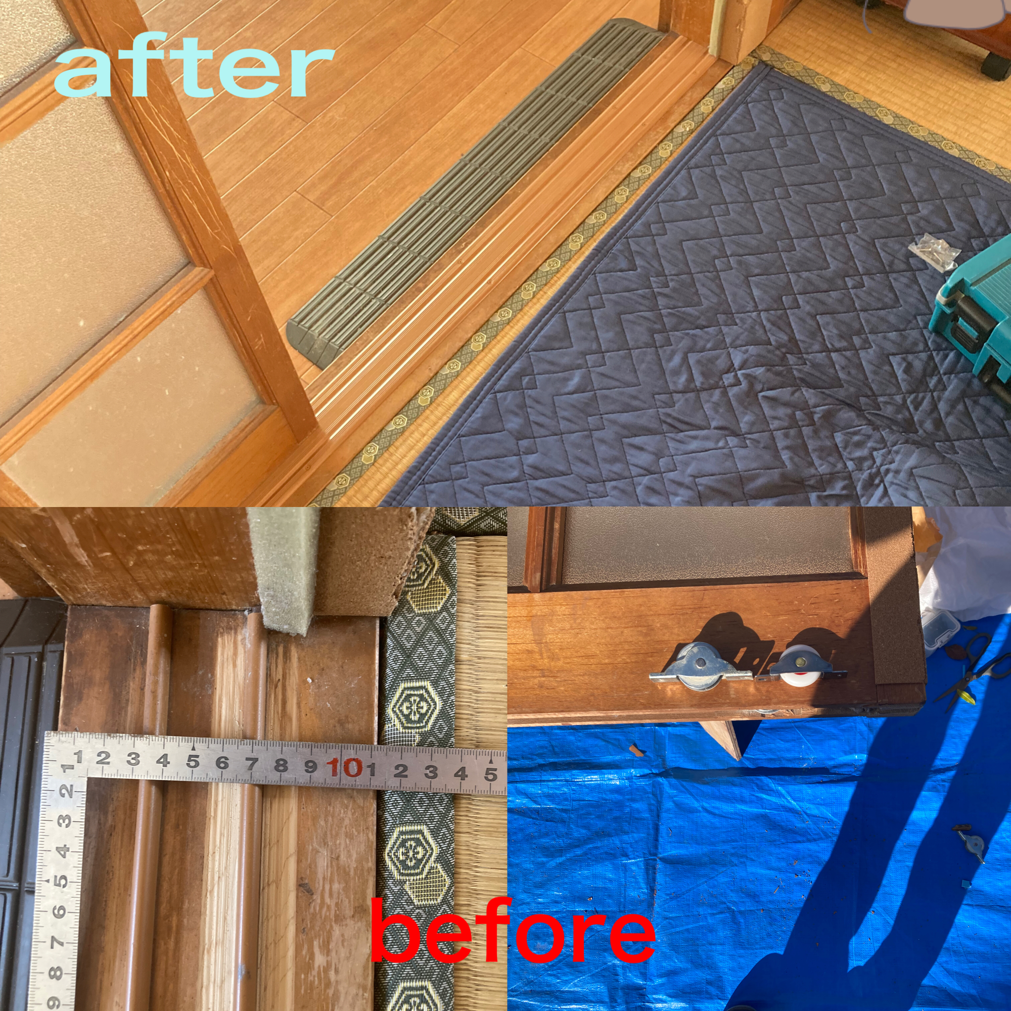 建具レール、戸車交換 バリアフリー工事を させて頂きました。 ご依頼有難うございます。